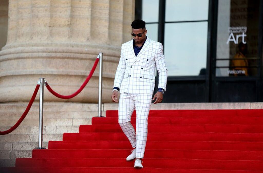 Jamal’s suit at the 2017 NFL draft event was one of the most iconic outfits of the night. He wore a white windowpane suit with black buttons and a black shirt. Adams completed the look with white pointed shoes and a pair of dark sunglasses. On his right wrist, he had a plain watch and decided to ditch the large blingy necklaces for a neat and clean look.