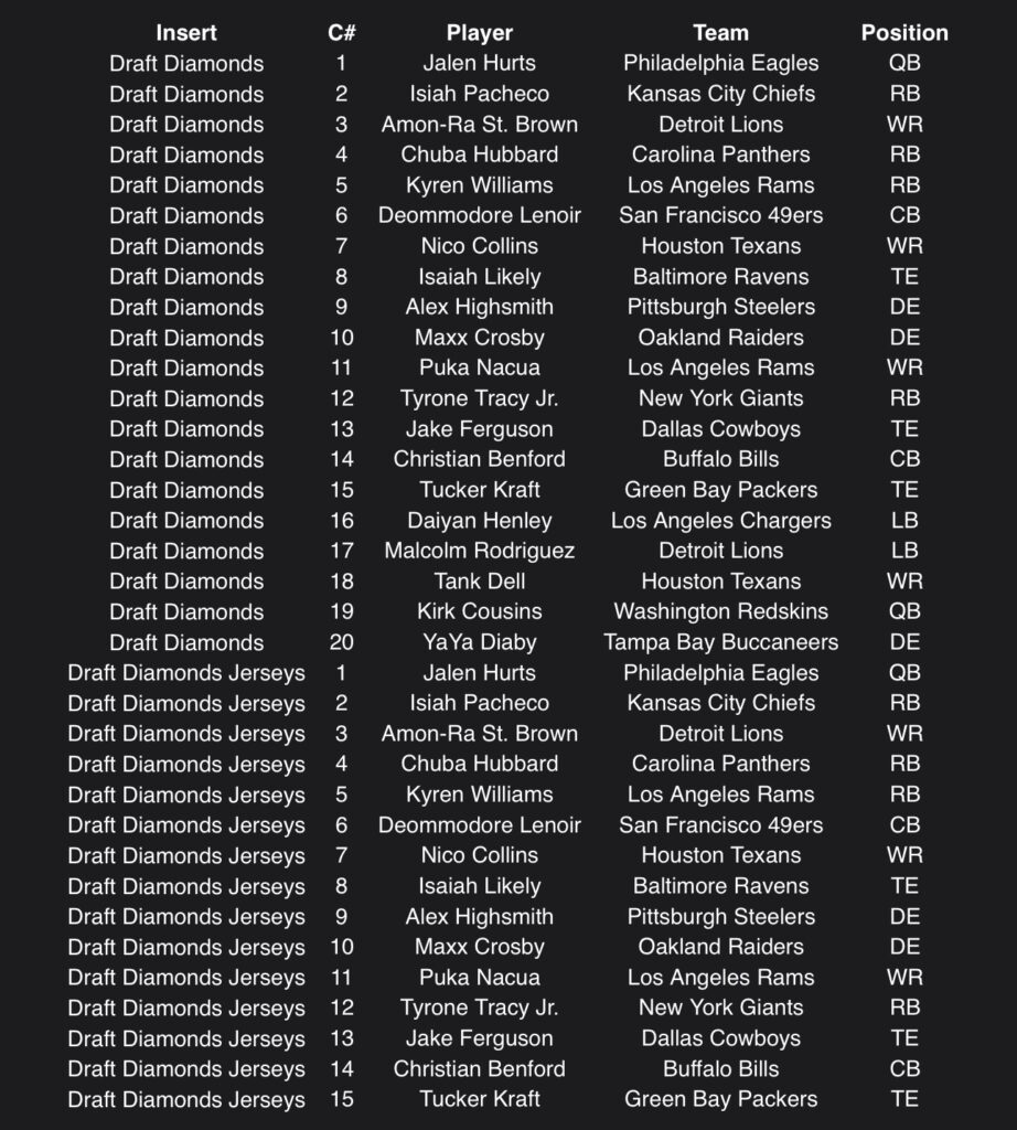Fifteen unique Jersey cards celebrating standout Draft Diamonds alumni.